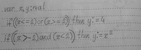 if (x > = -2) and (x < = 2) then y := sqr(x)