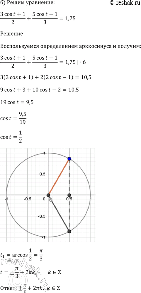 6) (3cos t + 1)/2 + (5cos t - 1)/3 = 1,75.