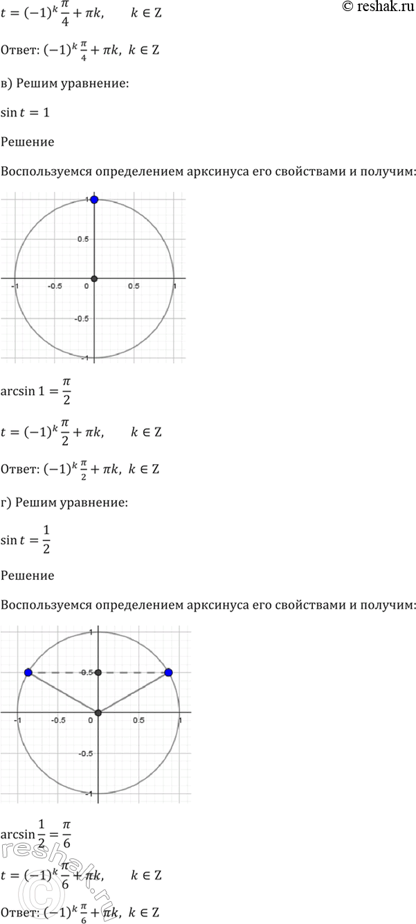 г) sin t = 1/2.