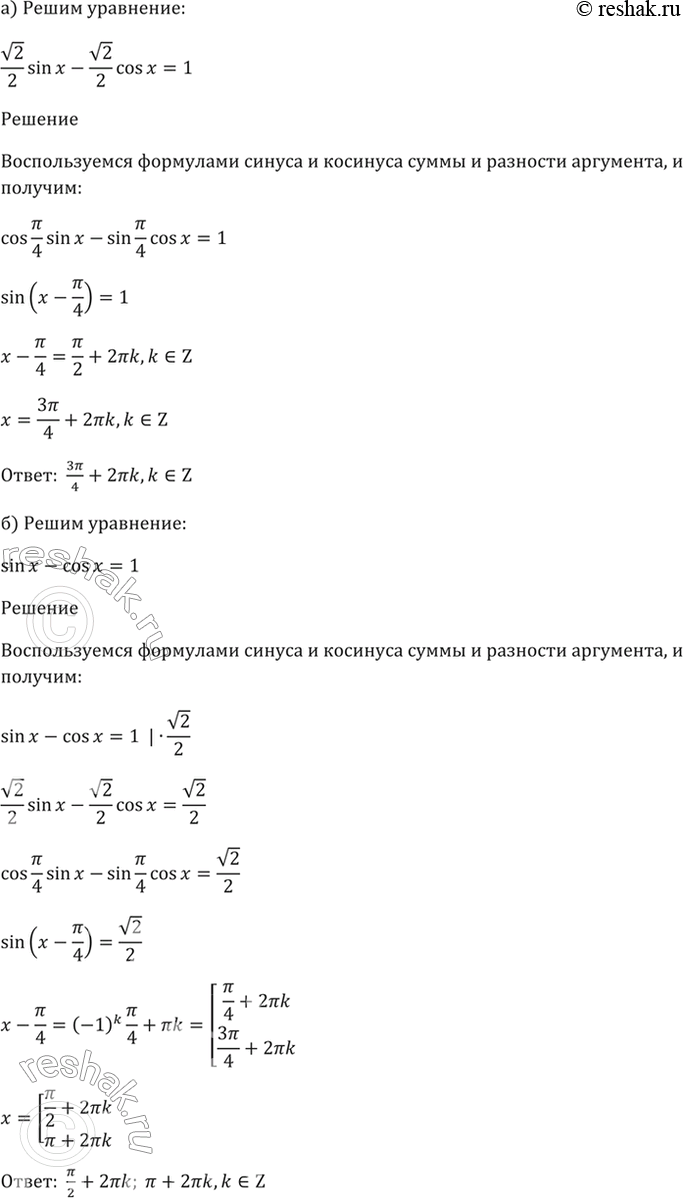 а) корень(2)/2 sin х - корень(2)/2 cos х = 1;