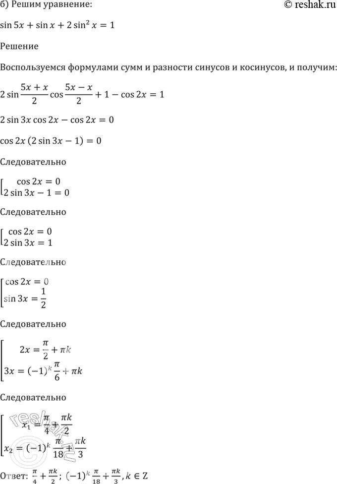 б) sin 5x + sin x + 2sin^2 x = 1.