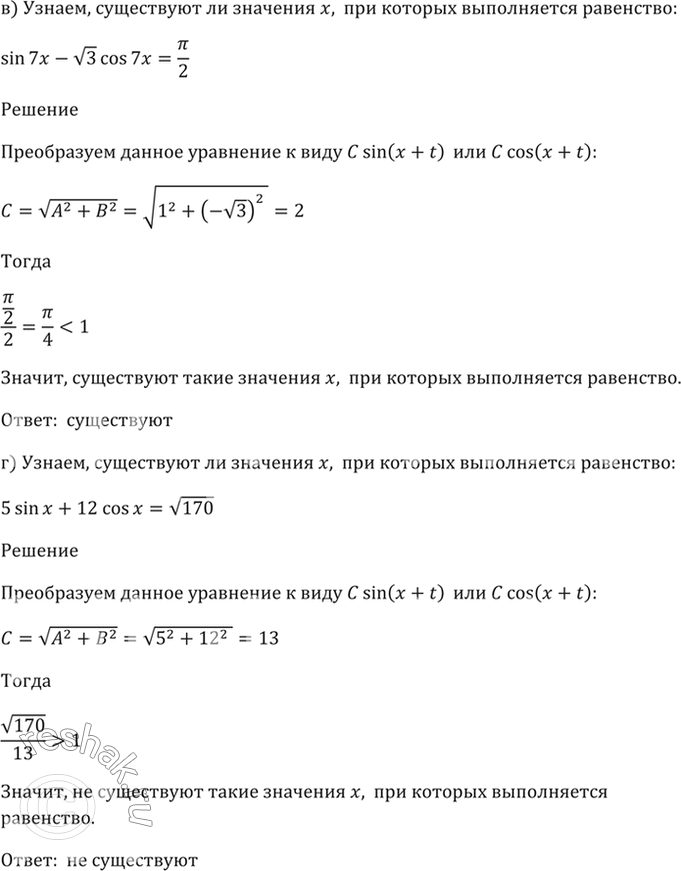 г) 5sin x + 12cos x = корень(170)?