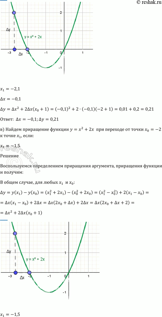 26.29 Найдите приращение функции у = x^2 + 2х при переходе от точки х0 = -2 к точке х1, если: