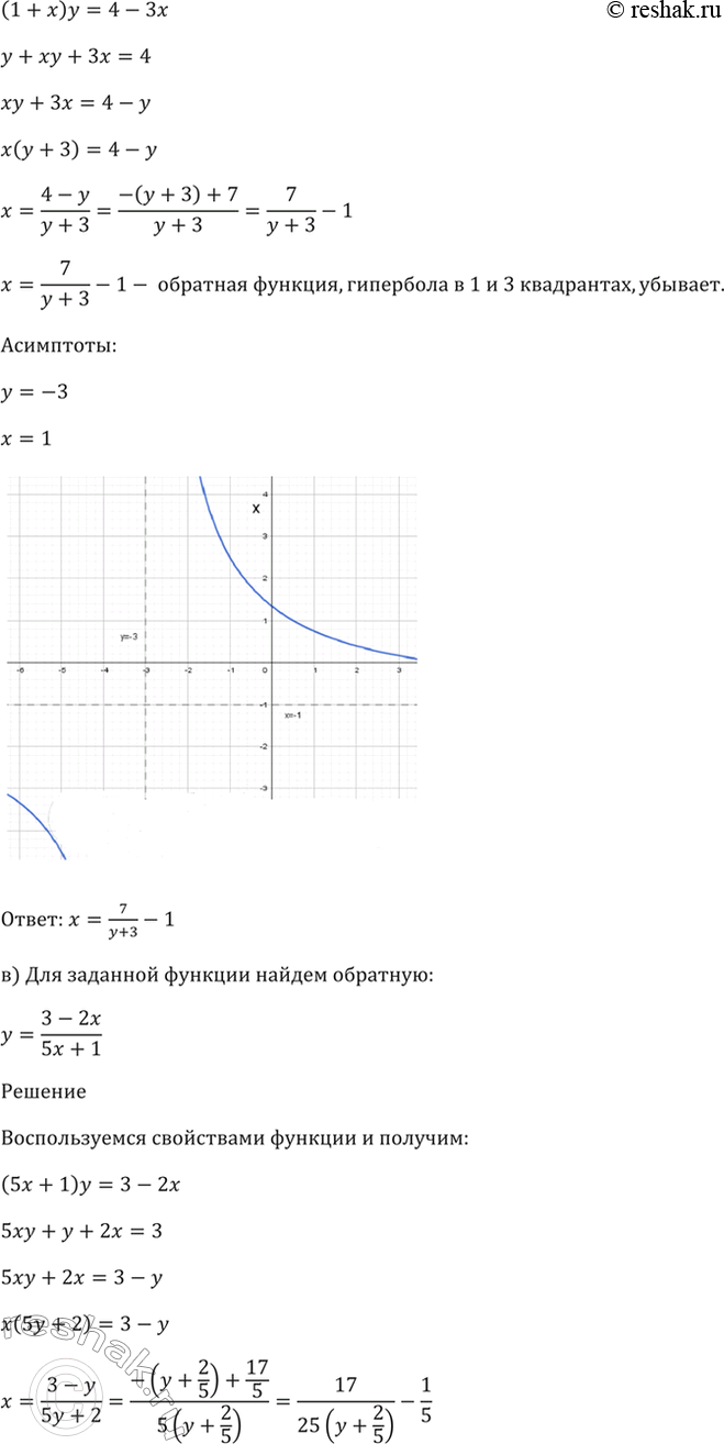 б) У = (4 - Зх)/(1 + х);