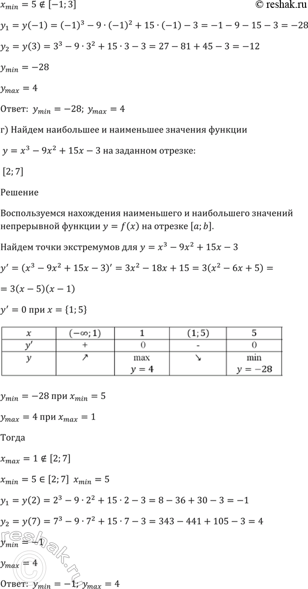 у = х^3 - 9х^2 + 15x - 3 на отрезке: