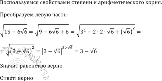 г) корень(15 - 6 корень(6)) = 3 - корень(6)?