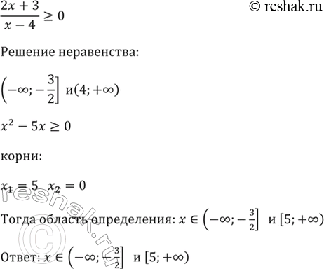 б) y = (6)корень(x^2 - 5x)/(2x + 2) - корень((2x + 3)(x - 4)).