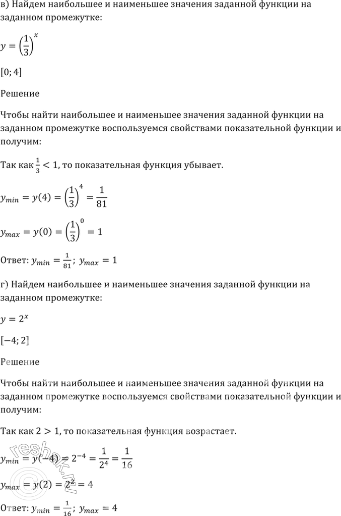 39.19 Найдите наибольшее и наименьшее значения заданной функции на заданном промежутке: