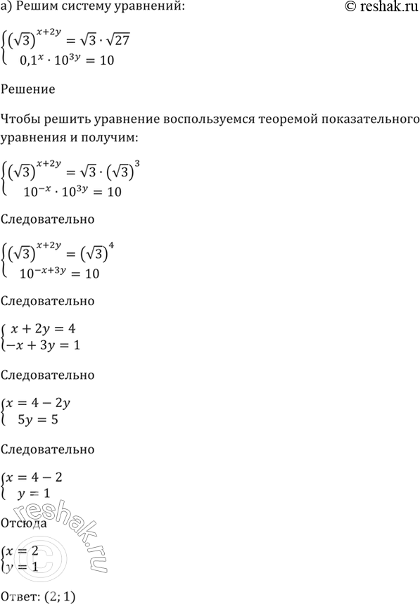 (корень(3))^(x + 2y) = корень(3) * корень(27),