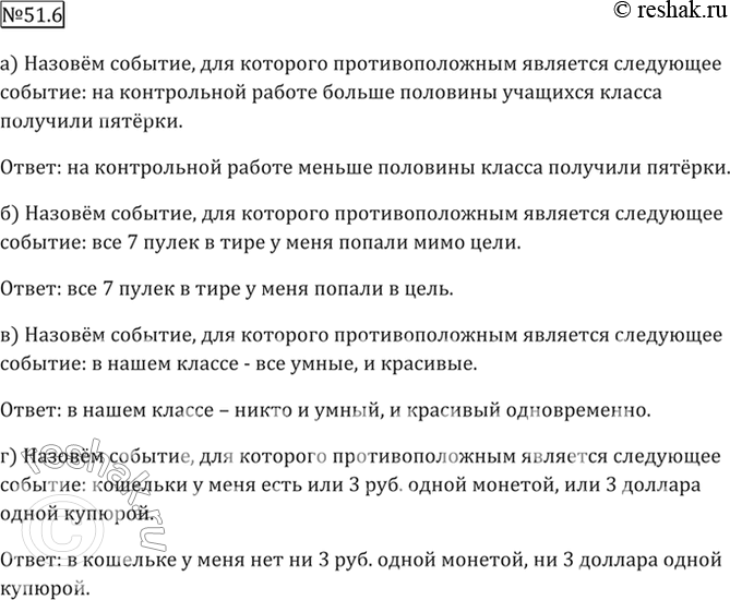 51.6 Назовите событие, для которого противоположным является следующее событие: