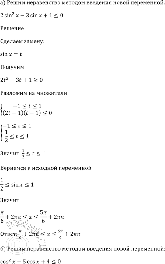 а) 2 sin^2 x - 3 sin x + 1 < = 0;