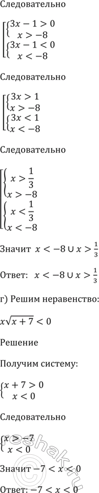 г) xкорень(х + 7) < 0.