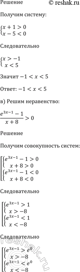 в) (e^(3x - 1) - 1) / (x + 8) > 0;