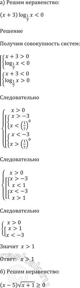 а) (x + 3) log1/7 x < 0;