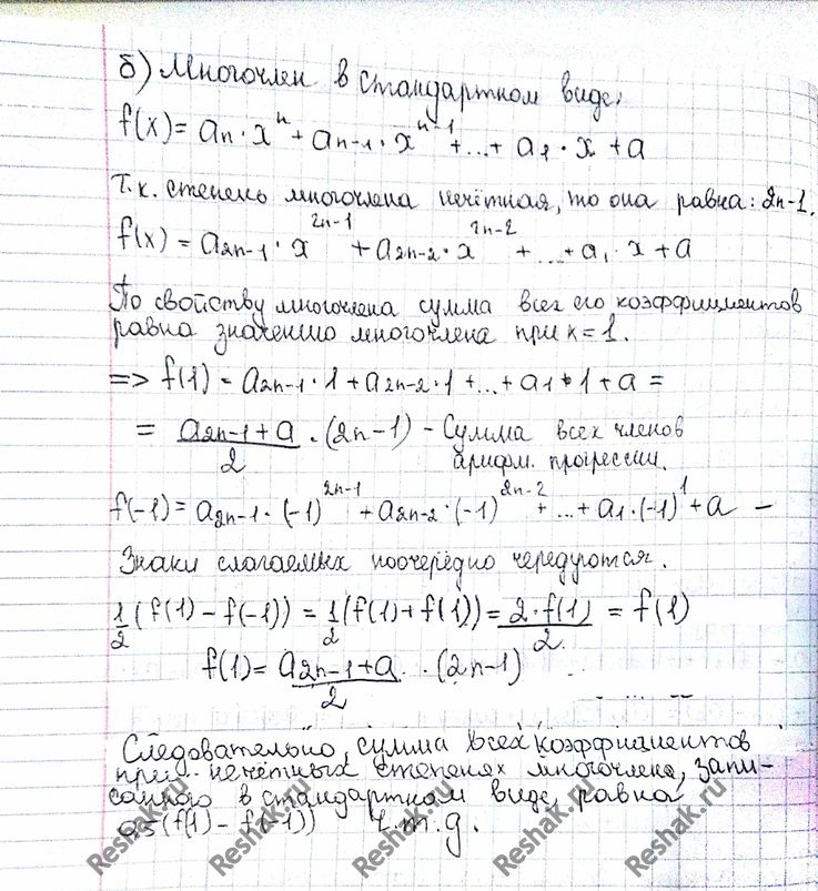 а) сумма всех коэффициентов при четных степенях многочлена f(x), записанного в стандартном виде, равна 0,5(f1) +f(-1));