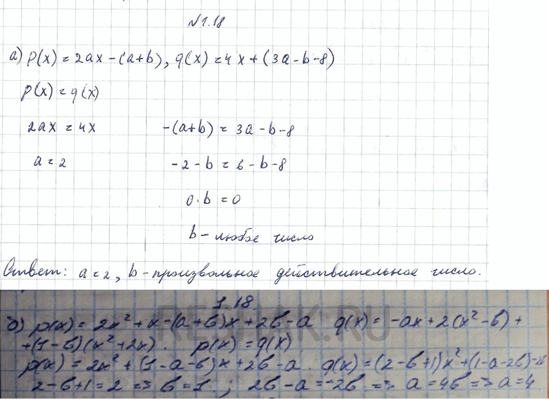1.18. Найдите все значения параметров а и b, при которых многочлены р(х) и q(x) тождественно равны: