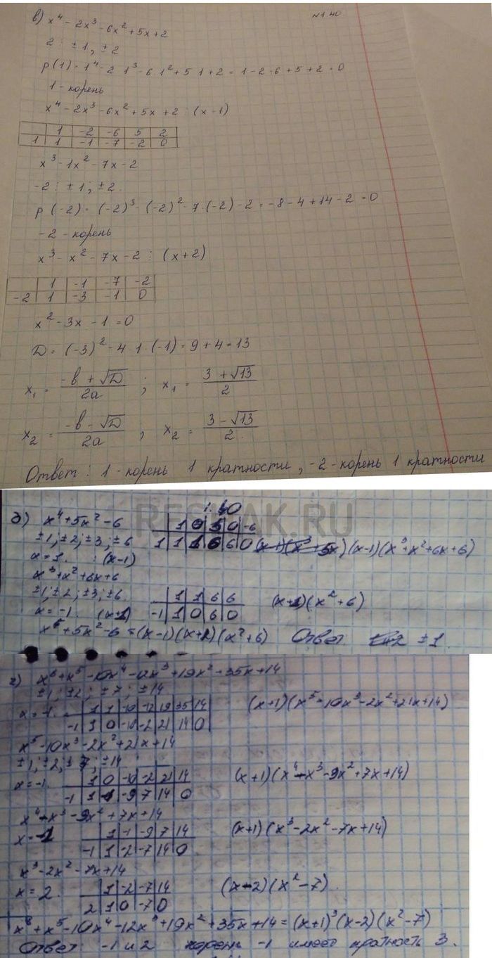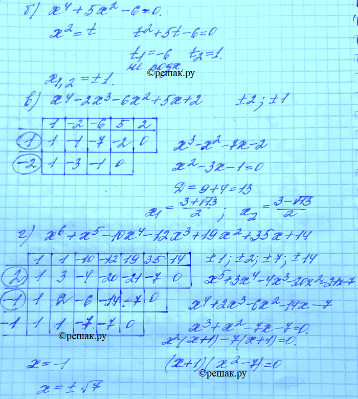 г)х6 + х5 - 10х4 - 12х3 + 19х2 + 35х + 14.