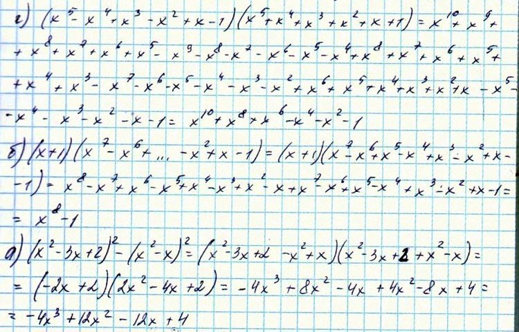 г) (х5 - x4 + х3 - x2 + х - 1)(х5 + x4 + x3 + x2 + x + 1).
