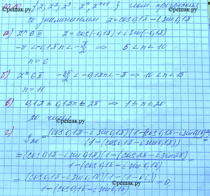 10.10. Пусть (z, z2, z3, ..., zn, zn + 1, ...) — геометрическая прогрессия со знаменателем z = cos0,1Пи - isin0,1Пи.