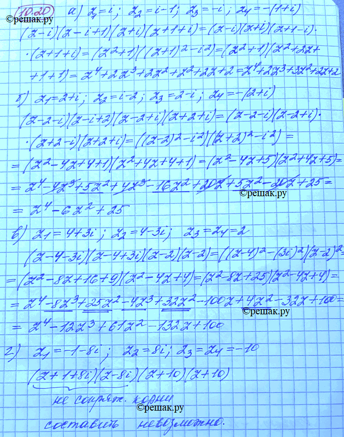 10.20 Составьте (если возможно) многочлен четвертой степени с действительными коэффициентами, корнями которого являются числа: