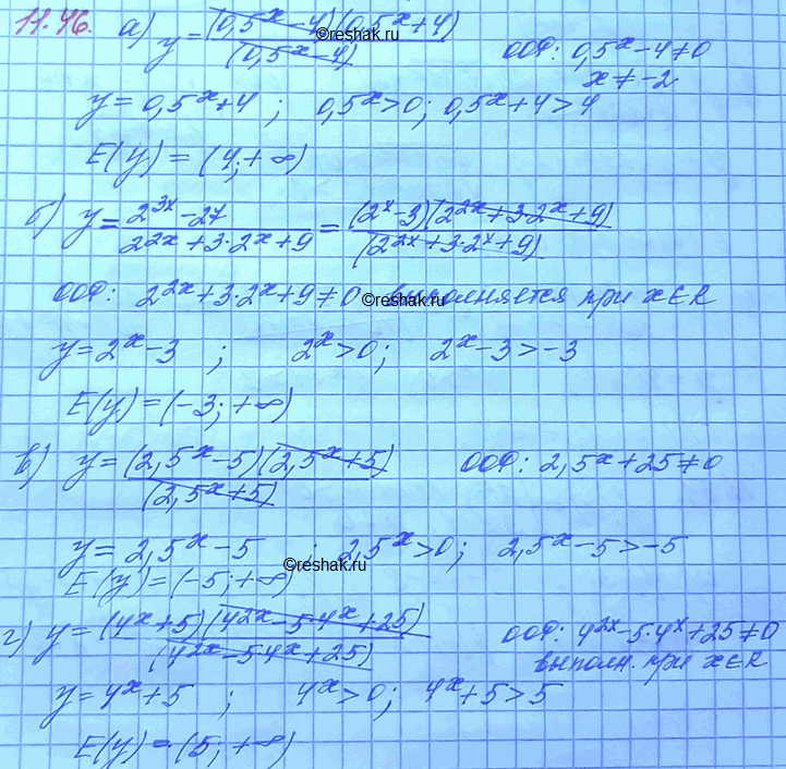 11.46 а) y=(0,5^2x - 16)/(0,5^x - 4);