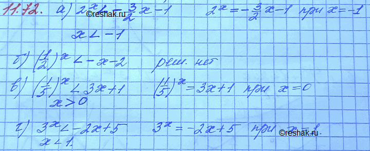 11.72 При каких значенияях x график заданной показательной функции расположен ниже графика заданной линейной функции:
