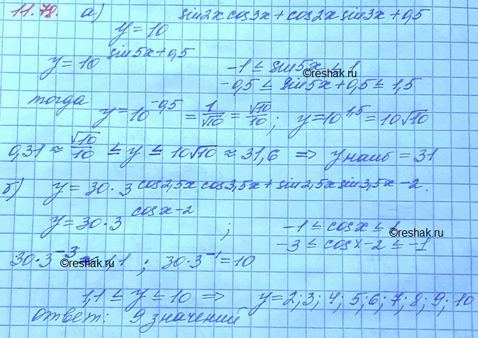 б) Сколько целых чисел принадлежит области значений функции у = 30 • 3^(соз2,5х cos3,5x^sin2,5x sin3,5x-2)?