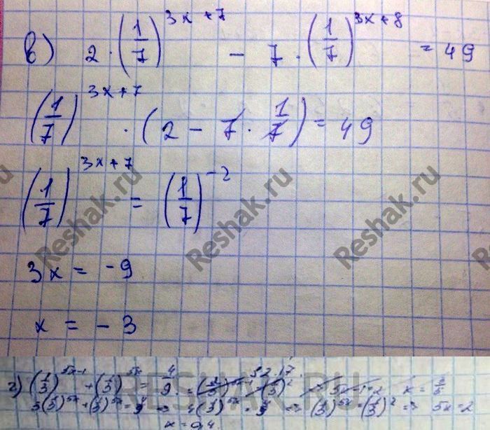 в)2*(1/7)(3x+7)-7*(1/7)(3x+8)=49;