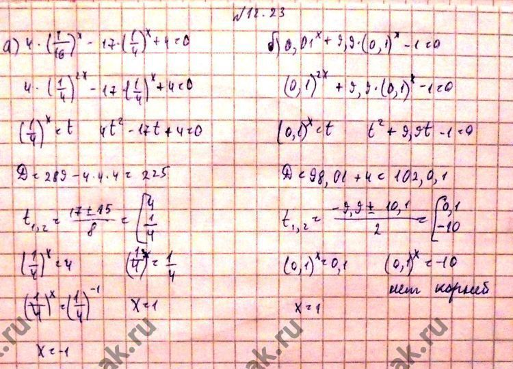 12.23 а)4*(1/16)x - 17*(1/4)x+4=0;