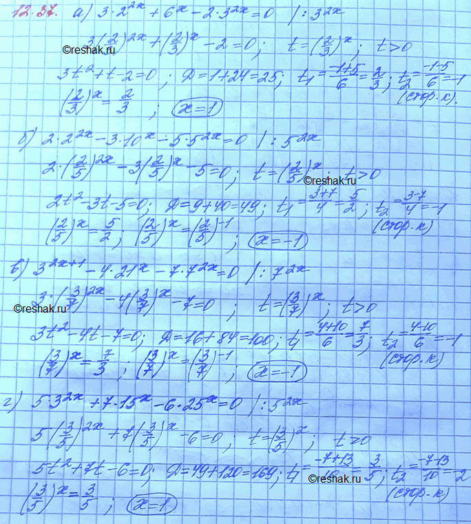 12.37 а)3*2x+6x-2*3^2x=0;
