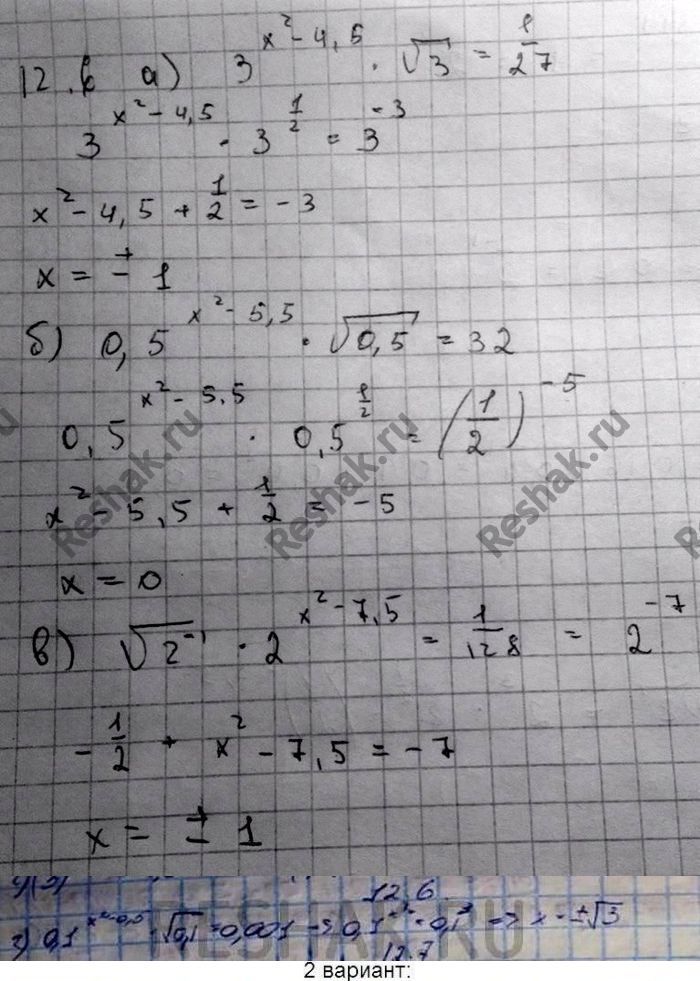 12.6 а)3^(x2-4,5) * корень 3= 1/27;