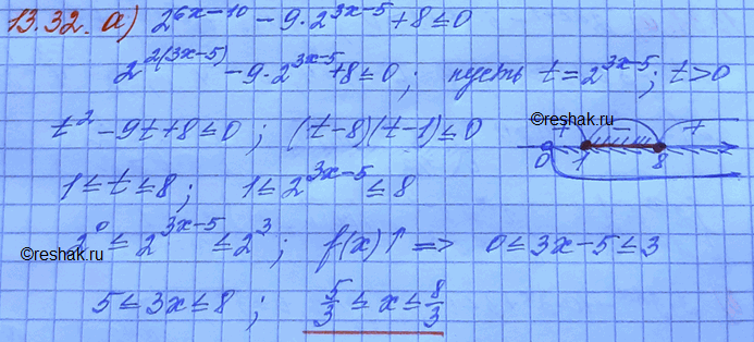 13.32 а) 2(6x-10) - 9*2(3x-5)+8 меньше или равно 0;