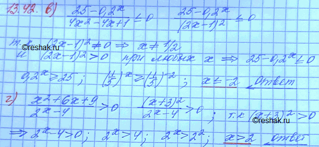 в)(25-0,2x)/(4x2-4x+1) меньше или равно 0;