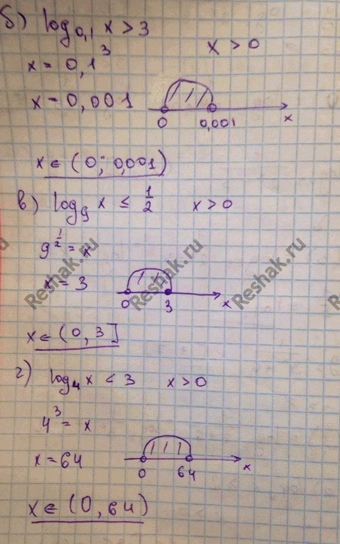 б) log0,1(х) > 3; г) log4(x) < 3.