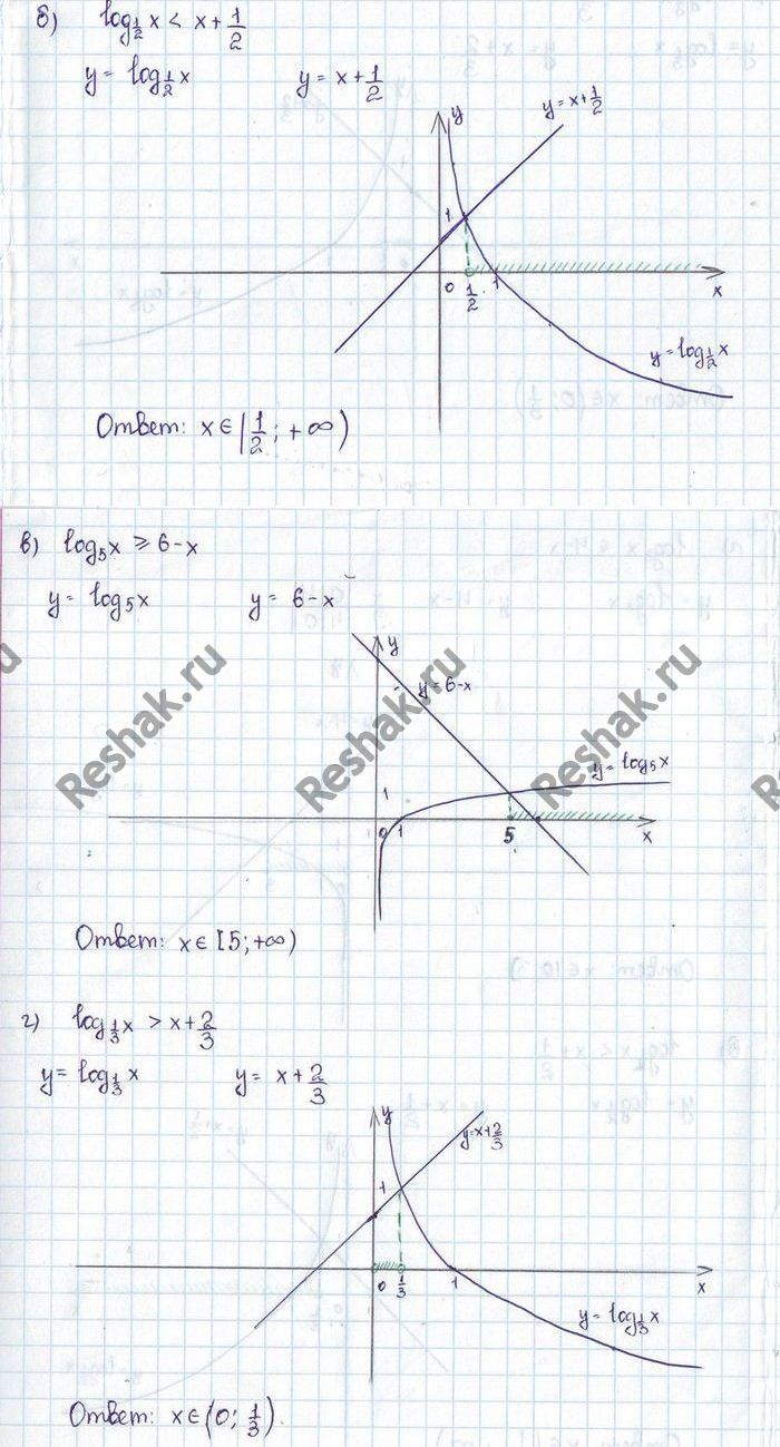 б)log1/2(x) < x+1/2 г)log1/3(x) > x+2/3.