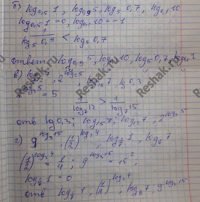 в) 2log2(5), log12(7), log15(7), lg0,3;