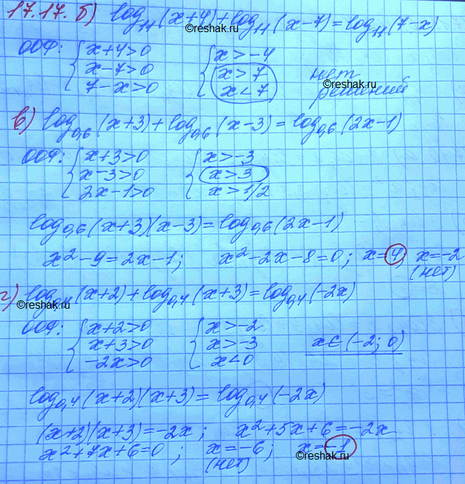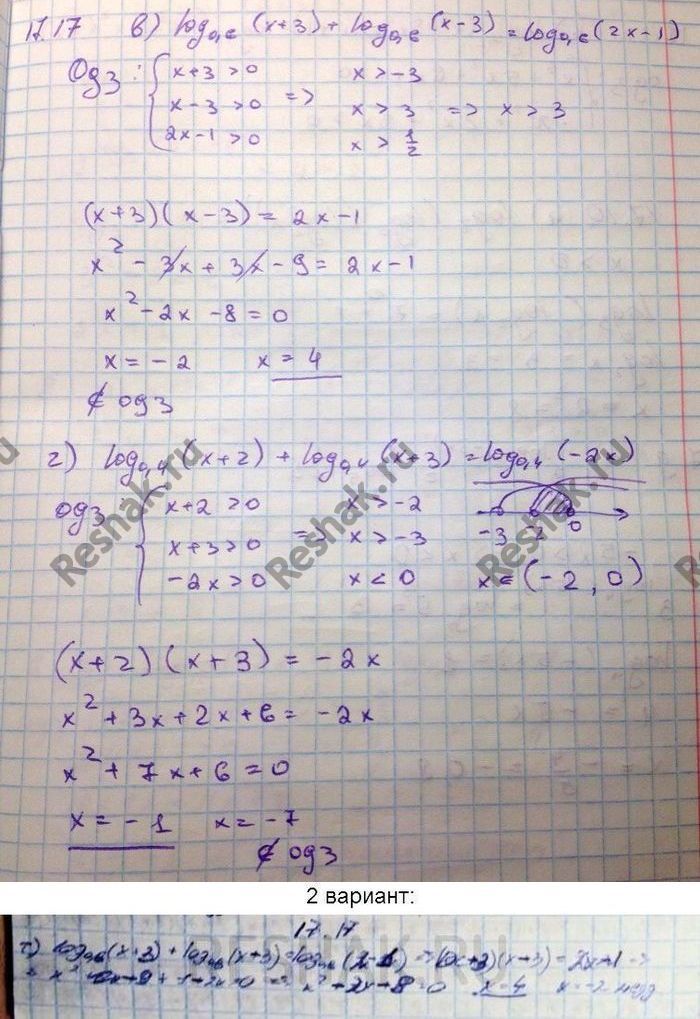 17.17. a) log3(x - 2) + log3(x + 2) = log3(2x - 1);