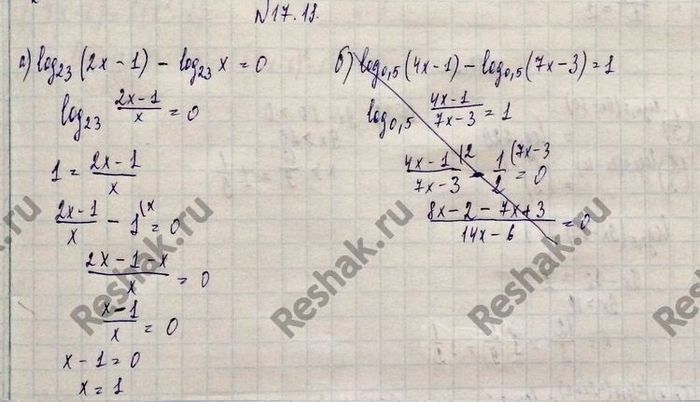 17.18. a) log23(2x - 1) - log23(x) = 0;