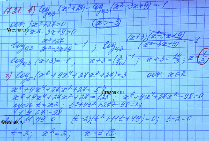 г) log5 (x6 + 9х4 + 27x2 + 27) = 3.