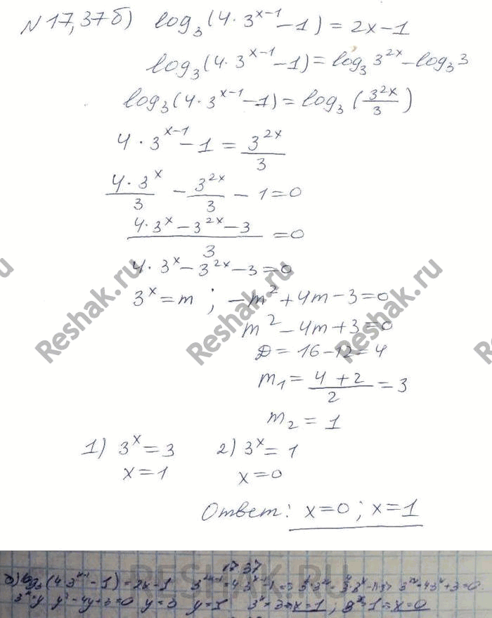 17.37. a) log5(6 - 5х) = 1 - х; б) log3(4 * 3^(x-1) - 1) = 2х - 1.