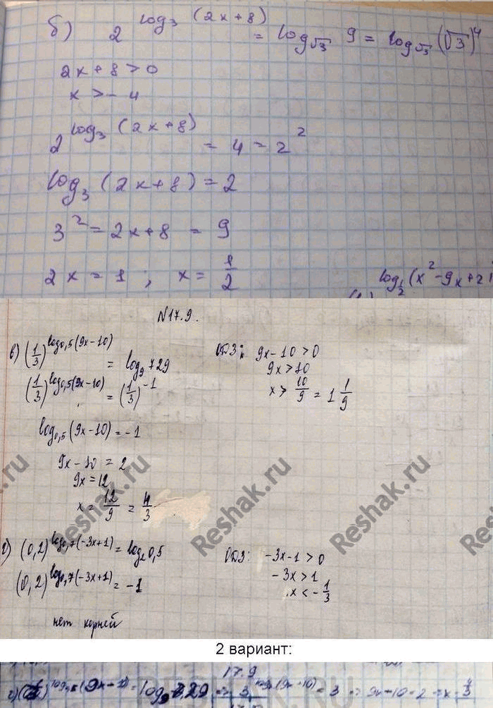 б)2log3(2x+8)=log корень 3(9);