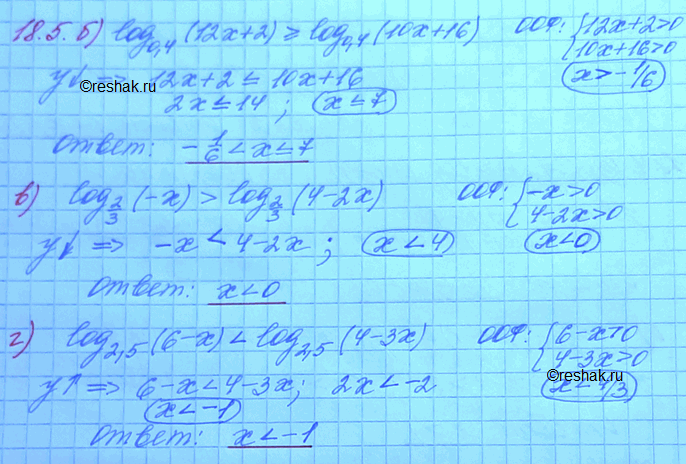 б) log 0,4 (12x + 2) больше или равно log 0,4 (10х + 16);