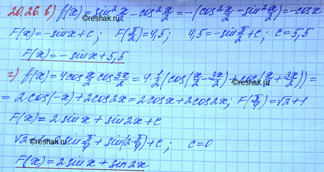 20.26 а)f(x)=-2sin(x/2)cos(x/2), F(-2Пи/3)=-15;