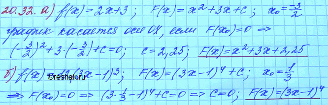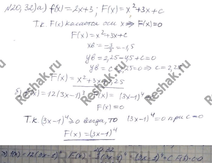 20.32. Найдите ту первообразную для заданной функции у =f(х), график которой касается оси х: