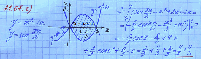 21.67 а)y=sin2x, y=16x2/Пи2;