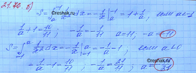 б) При каком отрицательном значении параметра а площадь фигуры, ограниченной линиями у = 1/x2, у = 0,х = -1, х = а, равна 10/11 ?