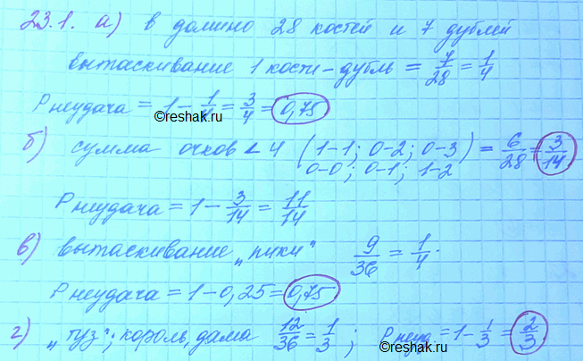 23.1. Найдите вероятность «успеха» в каждом из следующих испытаний: