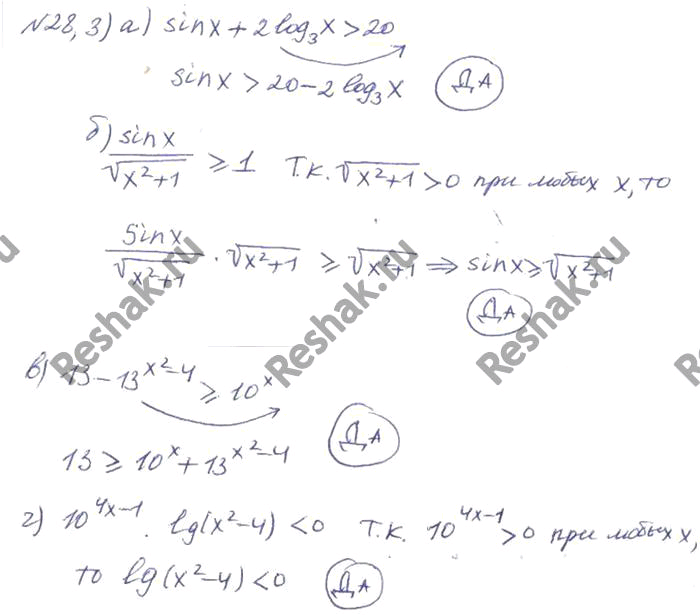 а) sin х + 2 log3(х) > 20 и sin х > 20 - 2 log3(х);