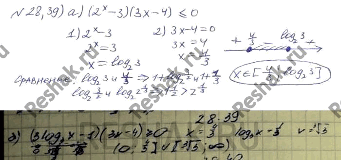 28.39. а) (2х - 3)(3*х - 4) меньше или равно 0;б) (3log3(x) - 1)(3*x - 4) больше или равно 0.