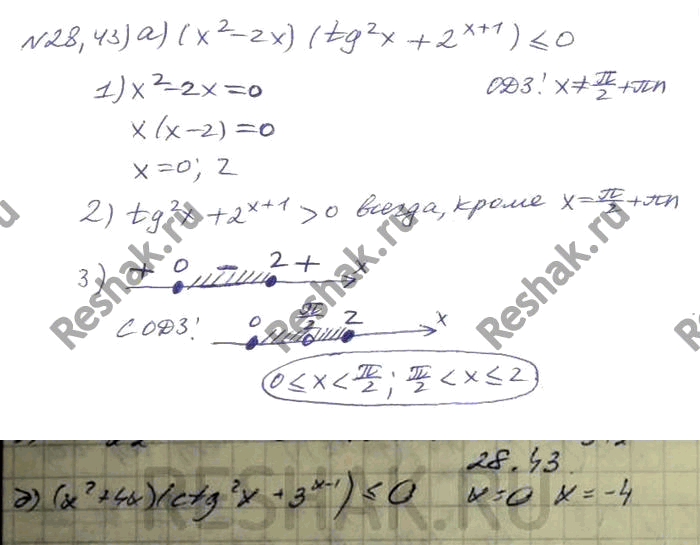 28.43 а)(x2-2x)(tg2(x) + 2(x+1)) меньше или равно 0;